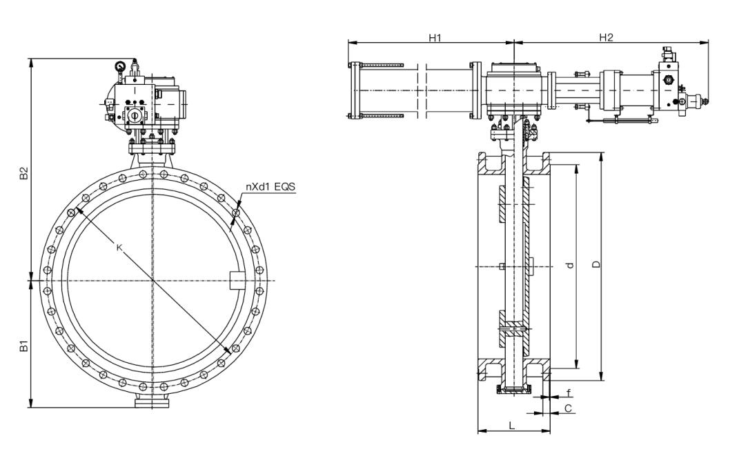 Main dimensions of spring-assisted 0.3s hydraulic quick-acting control valve PN=1.6Mpa