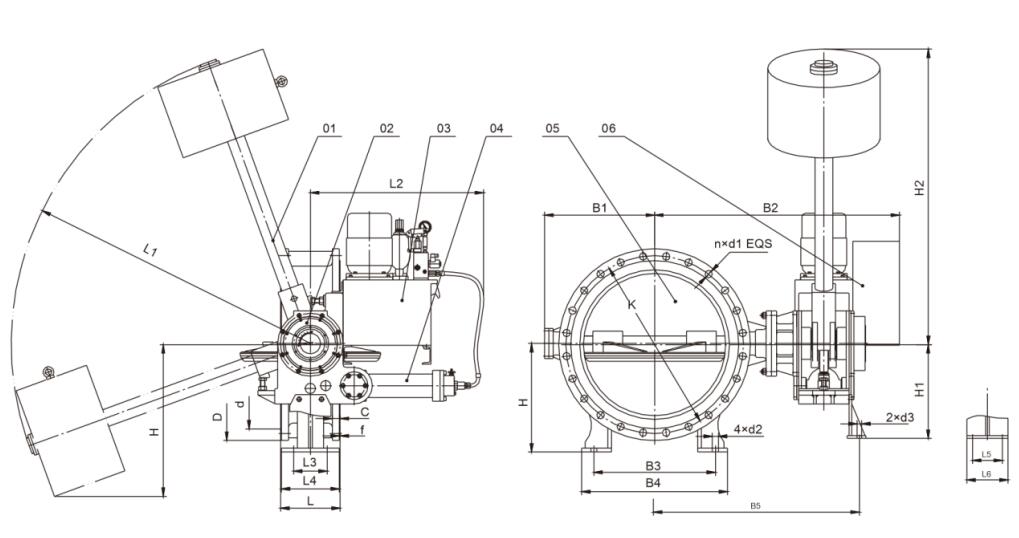 4、主阀密封为三偏心金属密封或双偏心橡胶密封结构,启闭轻松、密封可靠;并有一道额外加大的偏心,使阀门具有良好的自关闭、自密封性能。中、小口径蝶板设计成流线型平板结构,大口径蝶板设计面双平板桁架式结构,水流平顺,阀门流阻系数小,节能效果明显。