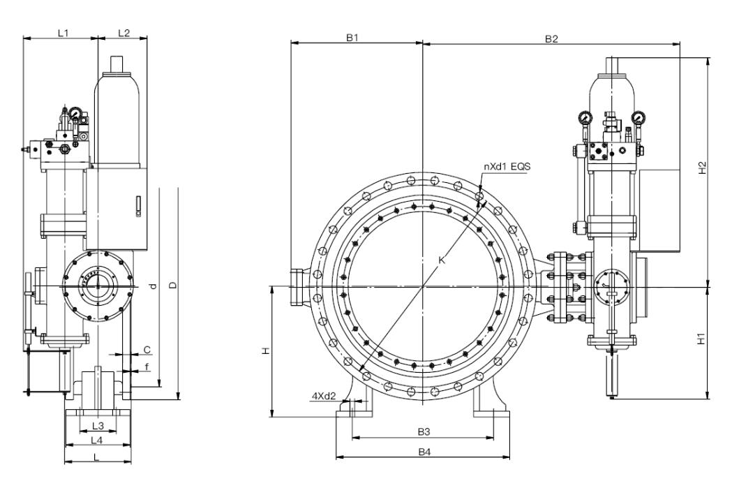蓄能器式0.3S液控快速启闭调节阀(整体式)主要外形尺寸
